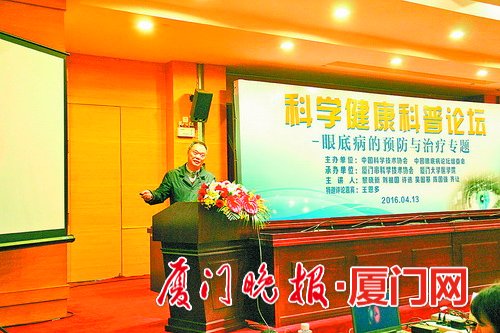 廈門大學(xué)附屬?gòu)B門眼【文章導(dǎo)讀】昨日舉行的“2016中國(guó)眼底病論壇——科學(xué)健康科普論壇”上,廈門大學(xué)附屬?gòu)B門眼科中心業(yè)務(wù)院長(zhǎng)、眼底病學(xué)科帶頭人吳國(guó)基為市民帶來(lái)一場(chǎng)關(guān)于 飛蚊癥的演講
