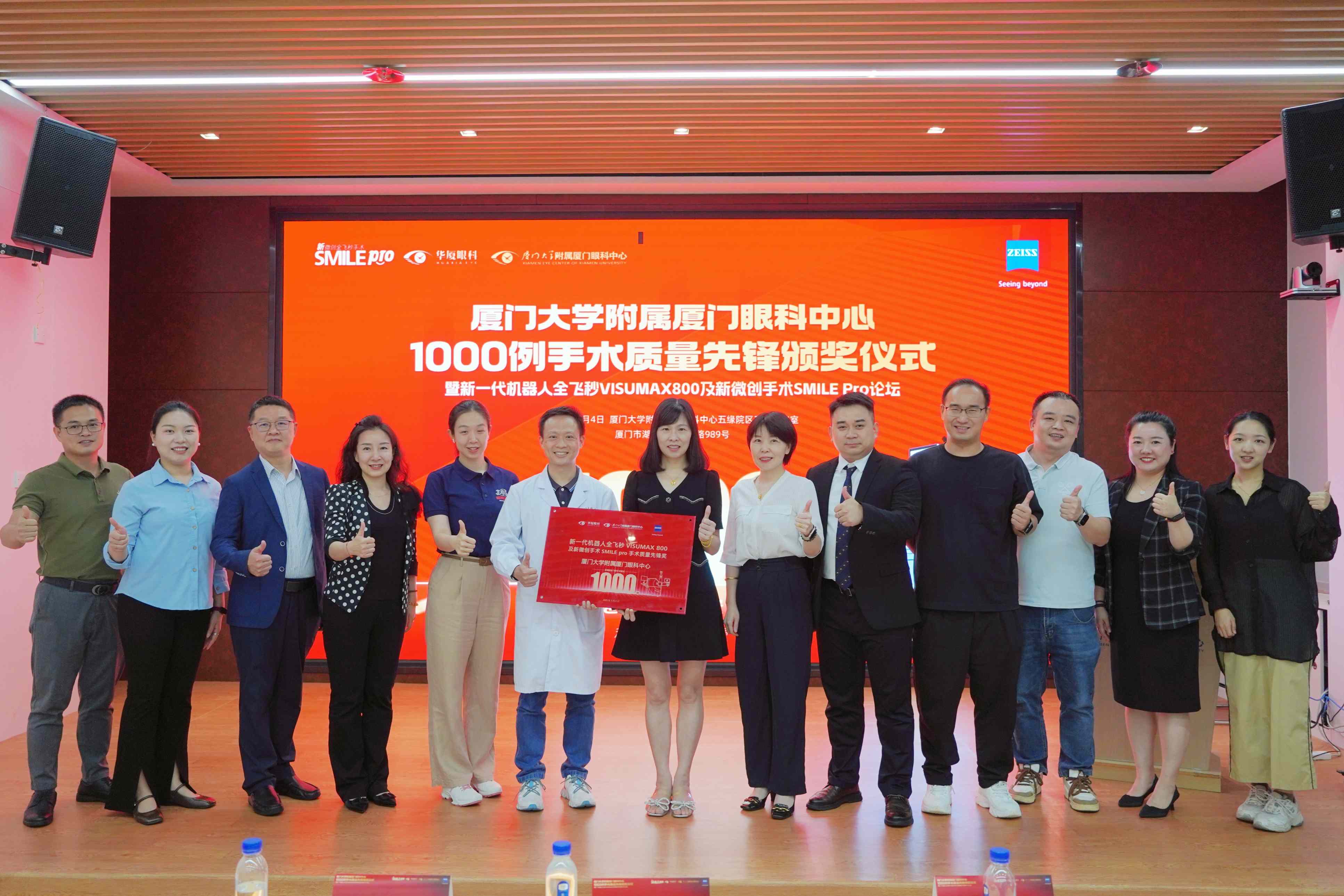 會議核心環(huán)節(jié),蔡司總部授予廈門眼科中心“SMILE Pro 1000例手術(shù)質(zhì)量先鋒獎”,這一殊榮是對廈門眼科中心在全飛秒SMILE Pro手術(shù)領(lǐng)域卓越成就的高度認可。