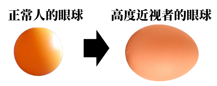 廈門眼科中心專家曾做過(guò)一個(gè)比喻:如果,正常人的眼球是圓圓的乒乓球,那么高度近視者的眼球就像扁扁的雞蛋。